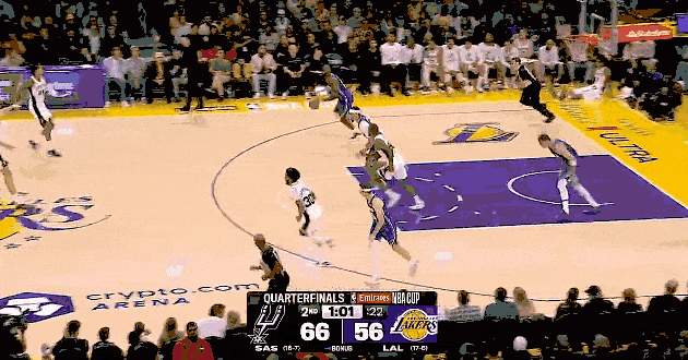 NBA杯半决赛,马刺与湖人,湖人纸糊一样的防守,输了重要的比赛。